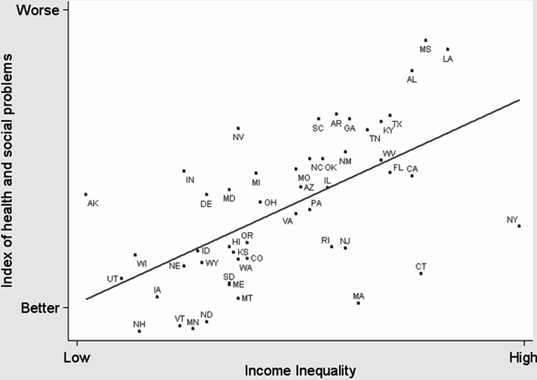 Tot 2010 wist ik niet veel over de consequenties van economische ongelijkheid. Toen kwam ik het boek The Spirit Level tegen waarin auteurs Richard Wilkinson en Kate Pickett hun onderzoeksresultaten presenteerden die lieten zien dat een hoog niveau van inkomensongelijkheid in rijke landen schadelijk is voor die landen. Hun onderzoek liet zien (1) dat hoe meer ontwikkeld een land is, hoe minder belangrijk economische groei is voor bepaalde objectief meetbare uitkomsten zoals levensverwachting (zie grafiek), (2) dat er in een studie van 23 van de rijkste landen een sterke relatie werd gevonden tussen gezondheidsproblemen en sociale problemen aan de ene kant en het niveau van inkomensongelijkheid aan de andere kant (zie grafiek), (3) dat deze zelfde relatie ook werd gevonden in een onderzoek naar de 50 Amerikaanse staten (zie grafiek).